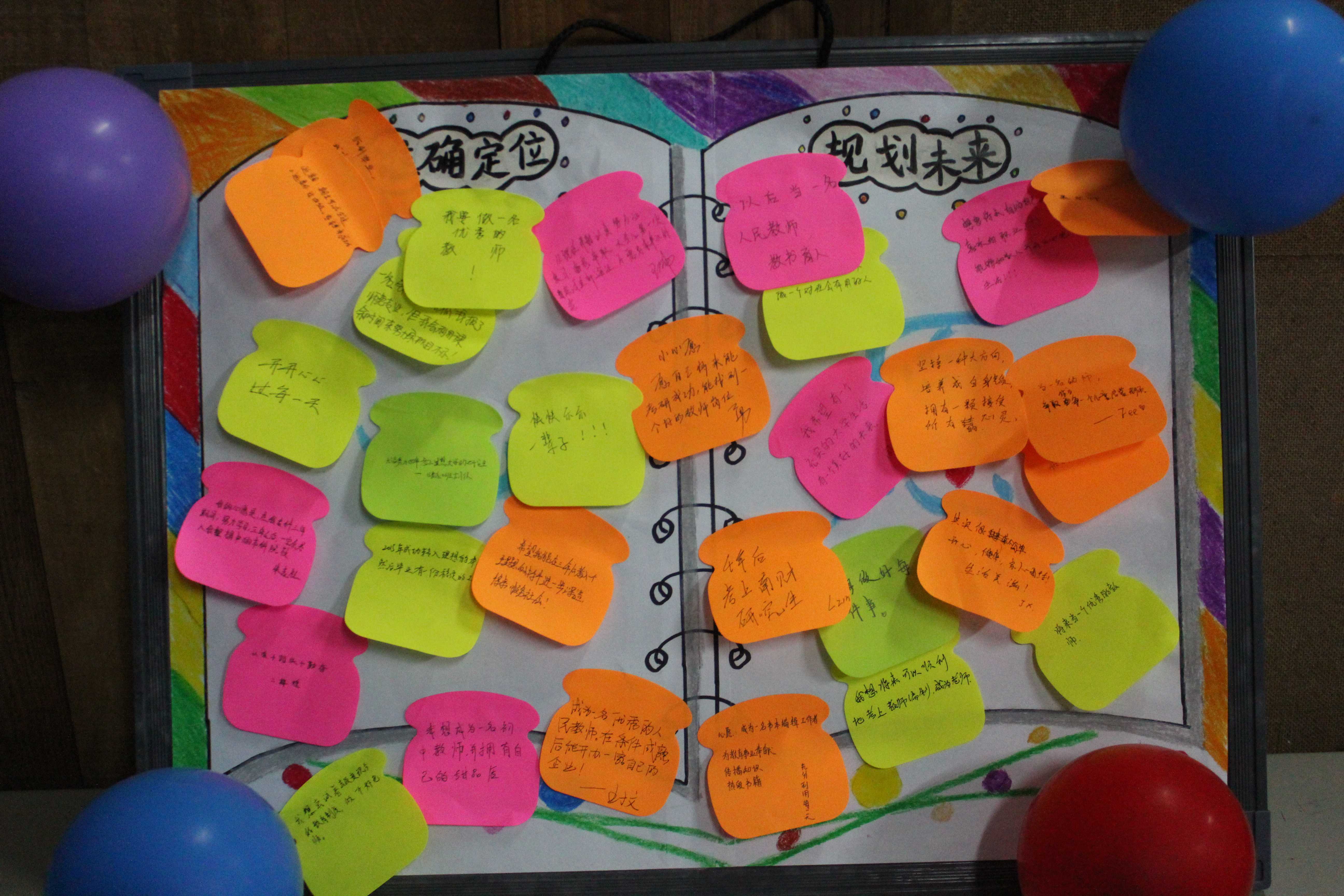 本次活动共分“定位、规划的必要性”和“如何正确定位、合理规划”两大部分。首先由一段《职来职往》的视频引入,同学们观看后纷纷针对视频中的现象踊跃发言,各抒己见。在第二部分,同学们学习了公司优秀毕业生代表王翠、郭立新和刘凯的事迹,王心怡、陆羽等同学为大家表演了自己编排的小品《大学课堂》,引发了同学们的第二轮研讨,大家在立足客观条件、结合自身实际的基础上深思自己的未来,纷纷畅谈自己对老员工活的理解,并将心愿条贴在了心愿板上。最后,研讨在小合唱《闪亮的日子》中圆满结束。