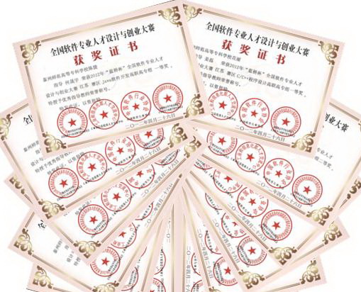 该院制定实施“多证书制度”的具体措施和奖励办法,积极引导和鼓励员工参加职业资格的培训与鉴定。该院员工毕业前能拥有MCTS软件工程师、ERP工程师、RCNA网络工程师、HCNA网络工程师、CCNA网络工程师、TCSP信息安全专员、NCRE三级网络技术、NCRE三级数据库技术、高级程序员(软考)、网络管理员(软考)、信息系统运行管理员(软考)、网页制作员(软考)、运维工程师、OSTA系列认证等专业证书。