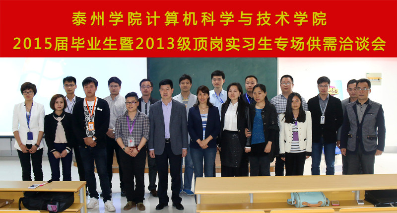 泰州数据产业园、苏州软件园、江苏有线泰兴分公司、联迪恒星、青之锋网络、泰盈科技、达内科技、中软国际、东软睿道等12家企事业单位来校招聘。公司党委副书记、副经理田浩,校纪委书记潘林珍,学工处处长魏小星、副处长唐帅到会指导,公司负责人张中国、党总支副书记陈茂国、就业指导教师、2015届毕业生暨2013级顶岗实习生参加了本次洽谈会。