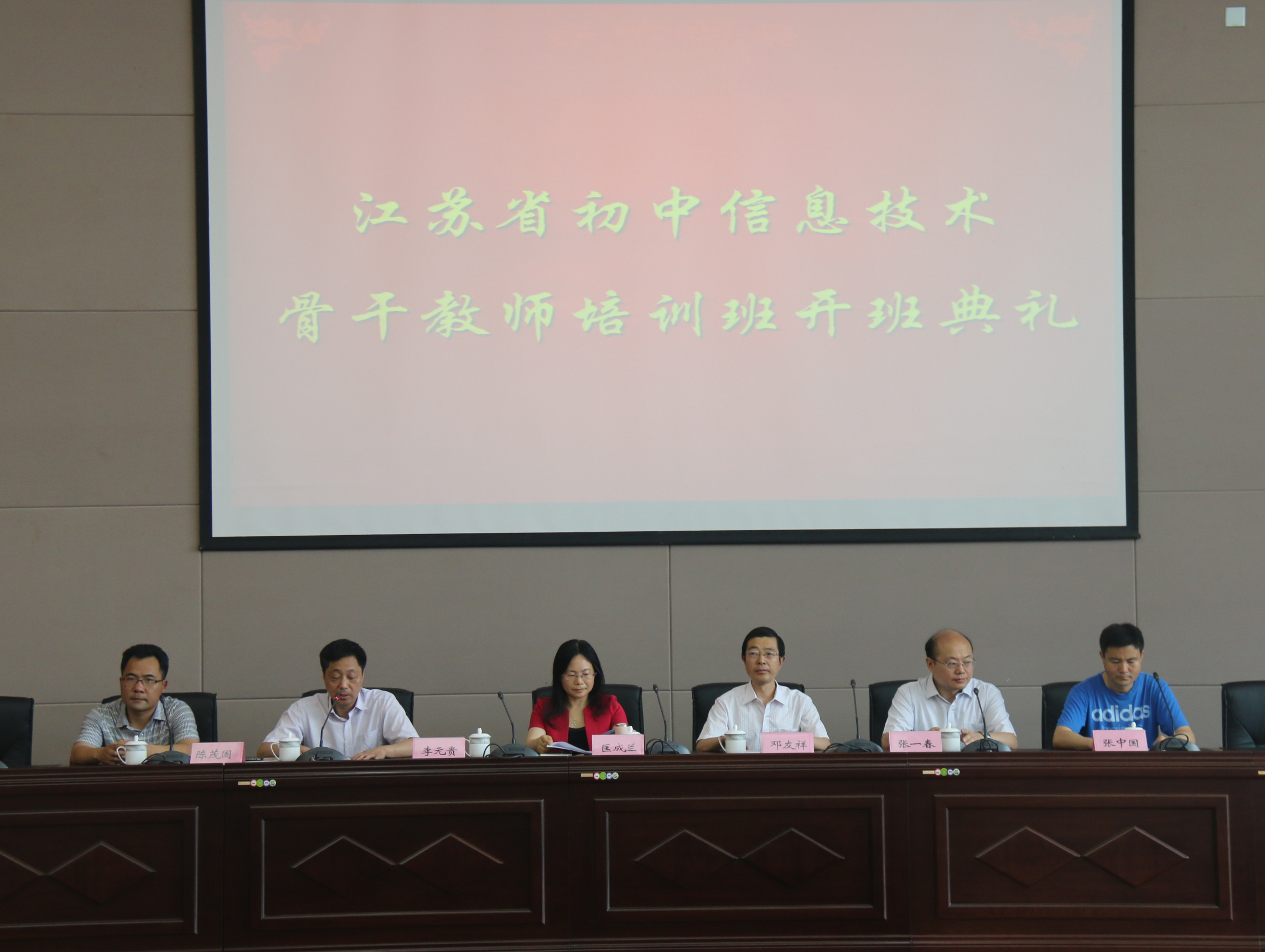 6月15日上午8:30,2015年江苏省农村初中信息技术骨干教师提高培训班开班典礼在公司济川校区D1216会议室隆重举行。来自扬州、镇江地区的70名农村初中信息技术骨干教师将在公司接受为期5天的提高培训。