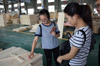 在沙集镇电商创业园,队员们首先参观了沙集电商展览馆,边听边看,第一次听说了“沙集模式”,切实感受到沙集电商家具产业的兴起帮助村民脱贫致富,过上了好日子。队员们尤其在沙集电商园未来规划的沙盘前驻足许久,为这个小镇的巨大发展潜力和空间深感震撼。队员们还了解到2018年的“淘宝峰会”将在睢宁召开,分会场就设在沙集。听到这一振奋人心的消息,小伙伴们由衷的为家乡点了120个赞!之后队员们还到园区和八里镇参观了多家家具生产企业,实地考察家具的生产过程,并和企业老板进行了交流,就共同开发老员工家具需求市场达成初步合作意向。