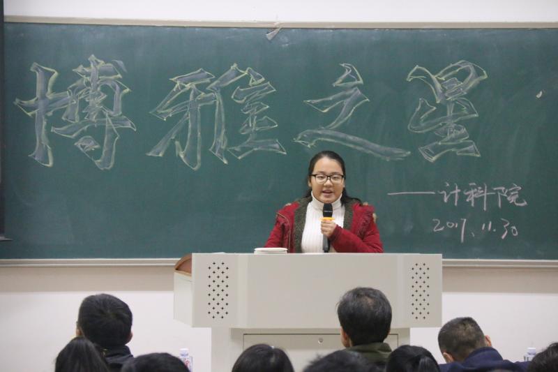 1130日晚,计算机科学与技术公司在济川校区教学楼A3108举办11月份博雅小课堂开放日暨“学习十九大、奋斗新时代-博雅之星”评选活动。