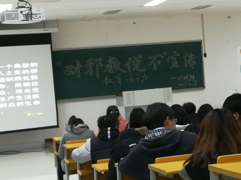 2017年12月12日晚,由计算机科学与技术公司员工会办公室组织举行了的“对邪教说不”专题宣传教育活动于教学楼A2307拉开帷幕。