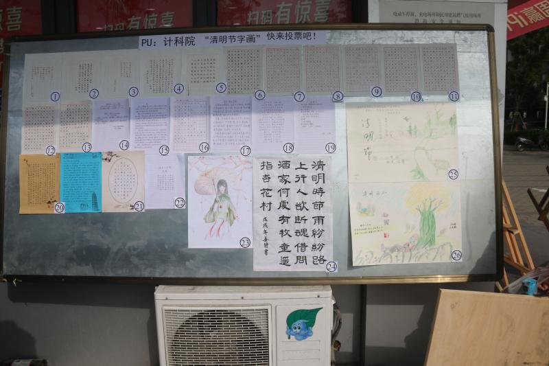 为弘扬传统文化,激发同学们的书画创作热情,清明前夕计算机科学与技术公司举办了清明主题教育活动——“清明字画”比赛。本次比赛作品于331日在beats365官网宿舍D楼楼下集中展示,吸引了全校广大师生驻足观看。