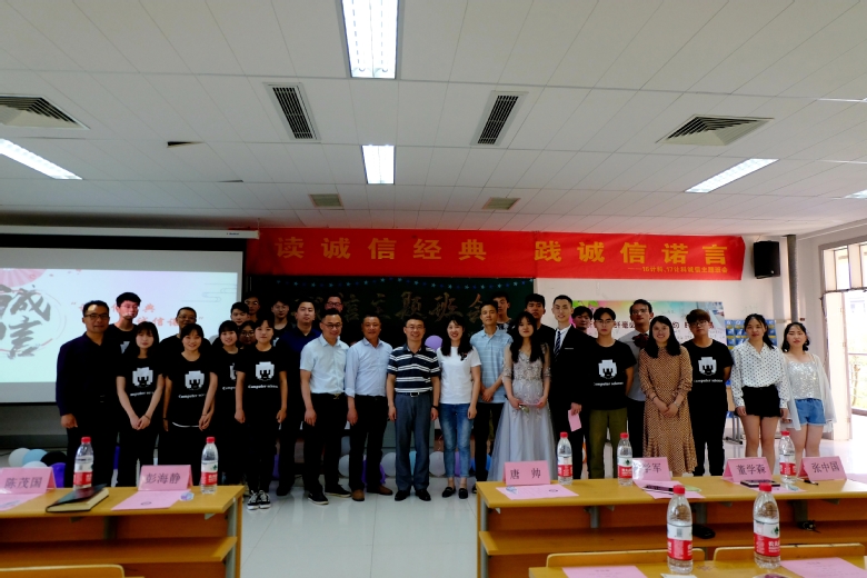 为进一步树立和践行社会主义核心价值观,提高老员工的诚信意识,5月22日下午,计算机科学与技术公司在教学楼A2207举办了以“读诚信经典,践诚信诺言”为主题的校级班会活动。公司党委常委、副董事长鲁学军,学工处负责人、二级公司相关负责人和各公司师生代表及16计科、17计科的全体同学参加了本次活动。