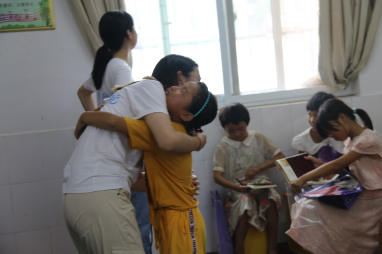 最后,本次汇演在暑期社会实践团队集体合唱的歌曲《再见》中完美的落下帷幕,“我会牢牢记住你的脸,我会珍惜你给的思念,这段日子在我心中永远都不会抹去…”熟悉的歌词带给了在场全员满满的感动。唱至动情处,小老师和员工们纷纷留下不舍的泪水,紧紧相拥在一起。“老师,你们就要走了吗?我还想继续听你们讲课,我好舍不得你们呀。”一群孩子紧紧握住老师的手哽咽着,流下不舍的泪水,实践团队员们为孩子们拭去泪痕,勉励孩子们要努力学习。伴随着本次汇演的结束,“追忆红迹,筑梦中原”社会实践团队为期16天的支教活动画上了一个完美的句号。