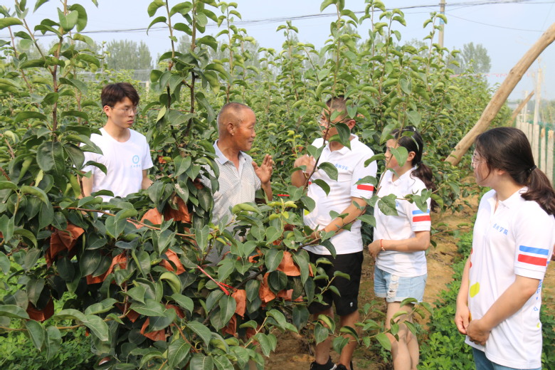 实践团队首先参观调研了当地烟叶、月季以及黄金梨特色种植基地,老农介绍了当地的气候、水文、土壤等种植条件。接着队员们深入农村走访农户,对当地的葡萄、猕猴桃、玉米等系列特色农作物的种植、销售进行详细地记录、调研。调研结果发现农户产品在销售方面还存在一些问题,如宣传力度不够、特色农产品的宣传与推介还有待进一步提升。此外,缺乏统一管理,以分散经营为主,专业化、经济化程度低。