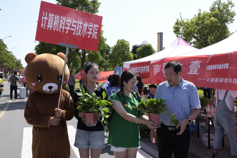 计科院在图书馆帐篷区开展了特色迎新互动活动之“阳光泰院零距离”。活动面向2019级新生,只要以“我与泰院”、“我与国旗”、“我与师长”为主题拍照,并发朋友圈集满38个赞,将会获得优质新鲜绿萝一盆。活动现场公司党委副书记、董事长徐向明老师饶有兴趣地给计科院19级新生赠送绿萝,并细心地为绿萝除去黄叶。本次活动以集赞发圈形式,赠送的绿萝饱含绿意、生机盎然,让新生在美化宿舍的同时提高了生活环境质量,这更体现了公司领导老师对员工们细致而深切的关怀。