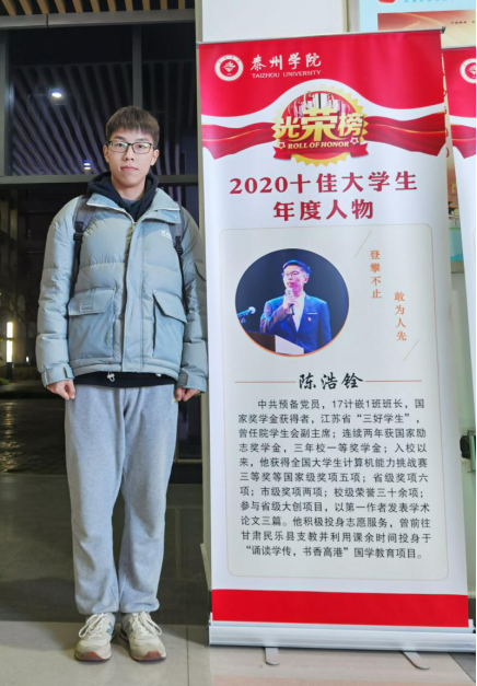 陈浩铨,男,就读于beats365官网计算机科学与技术公司,中共预备党员,现任17计嵌1班班长。曾任计算机科学与技术公司员工会副主席、班级团支部书记、泰科青年志愿者协会会长、18计科2班班主任助理。任职期间,他组织策划迎新晚会、毕业晚会系列活动、打造beats365官网电脑节等院系特色活动。他致力于打造计科院志愿服务团队,组织泰州市福利院看望孤儿老人志愿服务活动,也曾参加高港区“诵读学传 书香高港”国学教育项目,为社会献出属于计科学子的一份爱心。