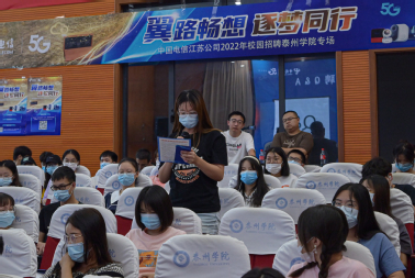中国电信公司泰州分公司人力资源部副主任邢雪椿分别从公司发展、企业环境、核心业务、岗位需求、薪酬福利、培养体系、招聘日程安排等几个方面对电信公司进行了详细的介绍。随后,人力资源部员工配置经理叶振华为同学们答疑解惑。