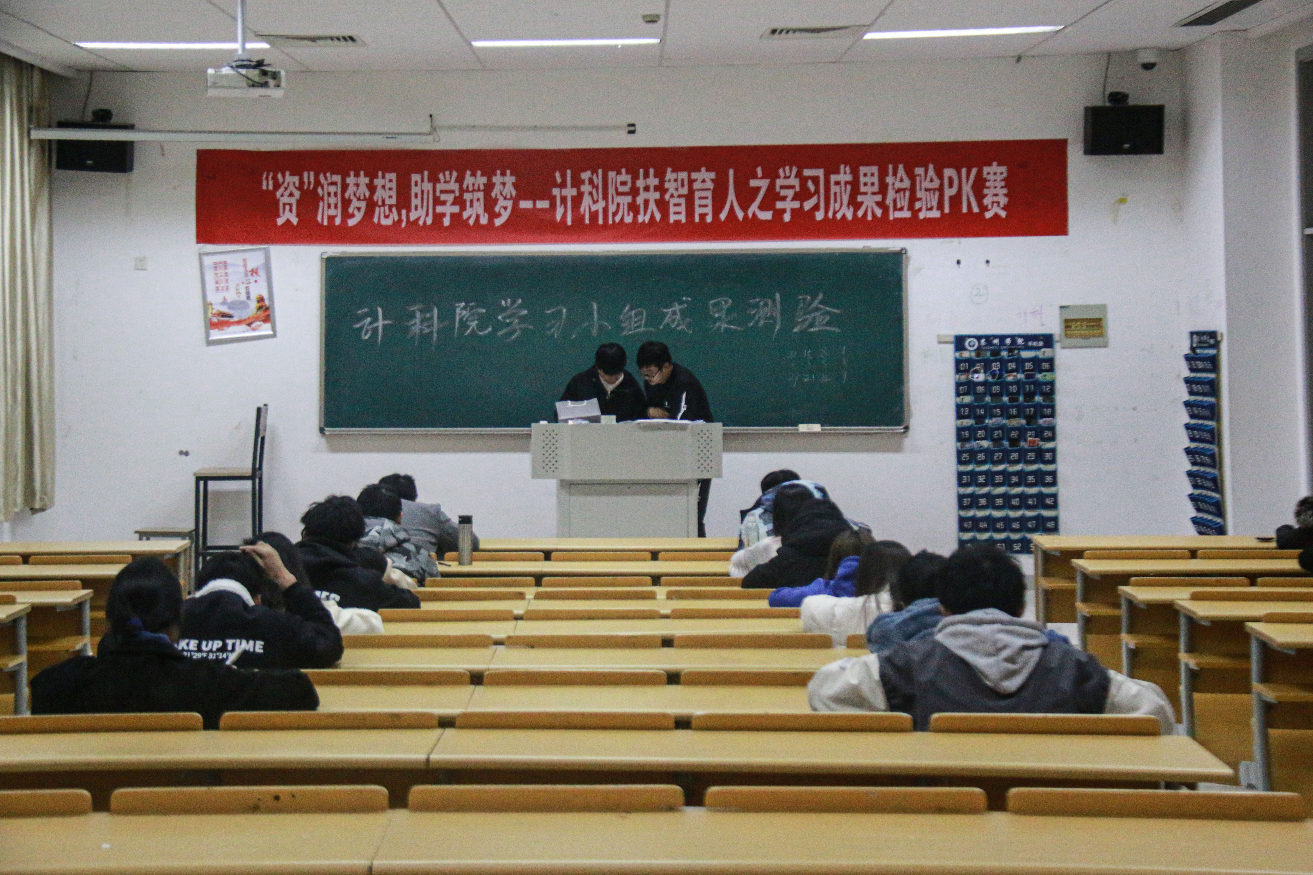 为扎实推进立德树人根本任务,帮助家庭经济困难员工提升学习能力、实践能力,11月28日晚,计算机科学与技术公司在教学楼3407开展了‘资’润梦想、助学筑梦——扶智育人之学习成果检验PK赛活动。