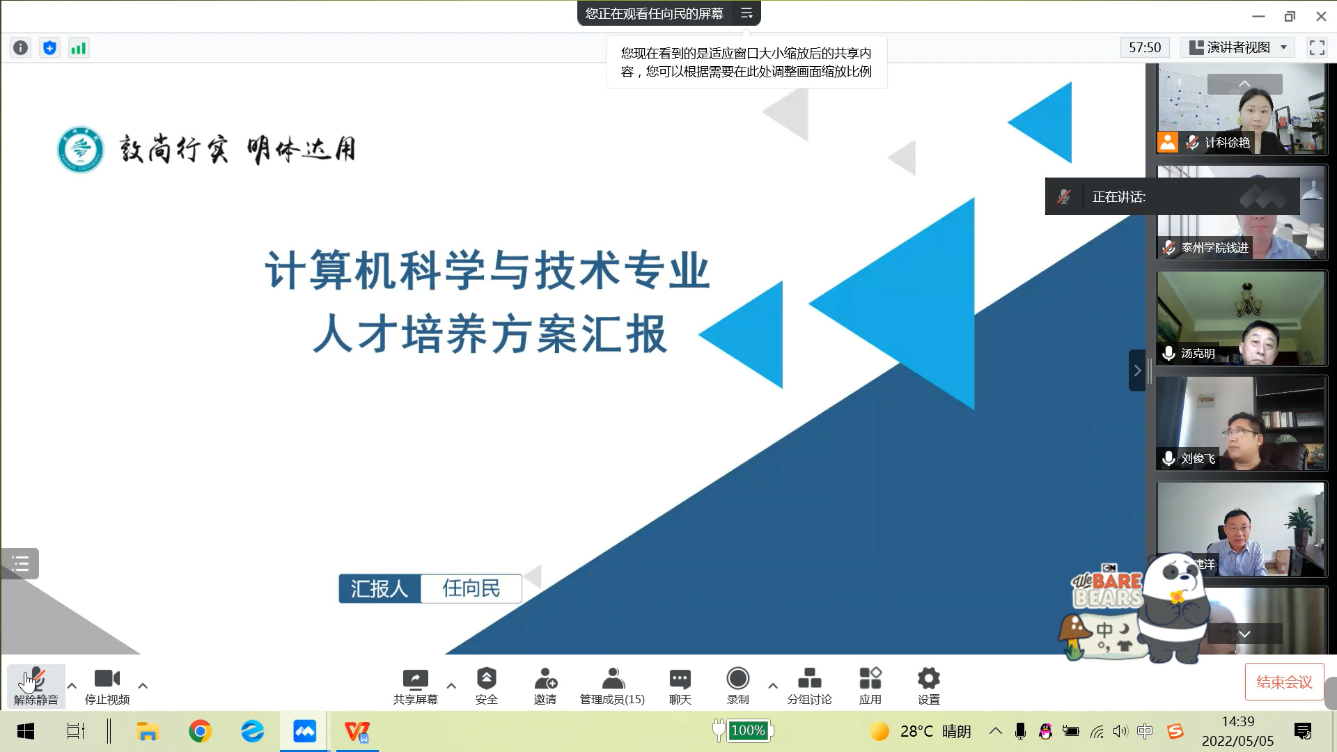 5月5日下午,计算机科学与技术公司2022版本科专业人才培养方案论证会(视频会议)顺利举行。周建超副董事长出席会议并讲话,对各位专家的莅临指导表示衷心的感谢。公司、系部负责同志参加了会议。