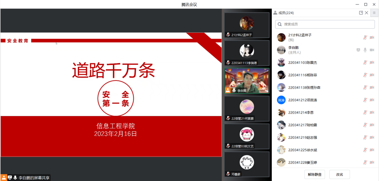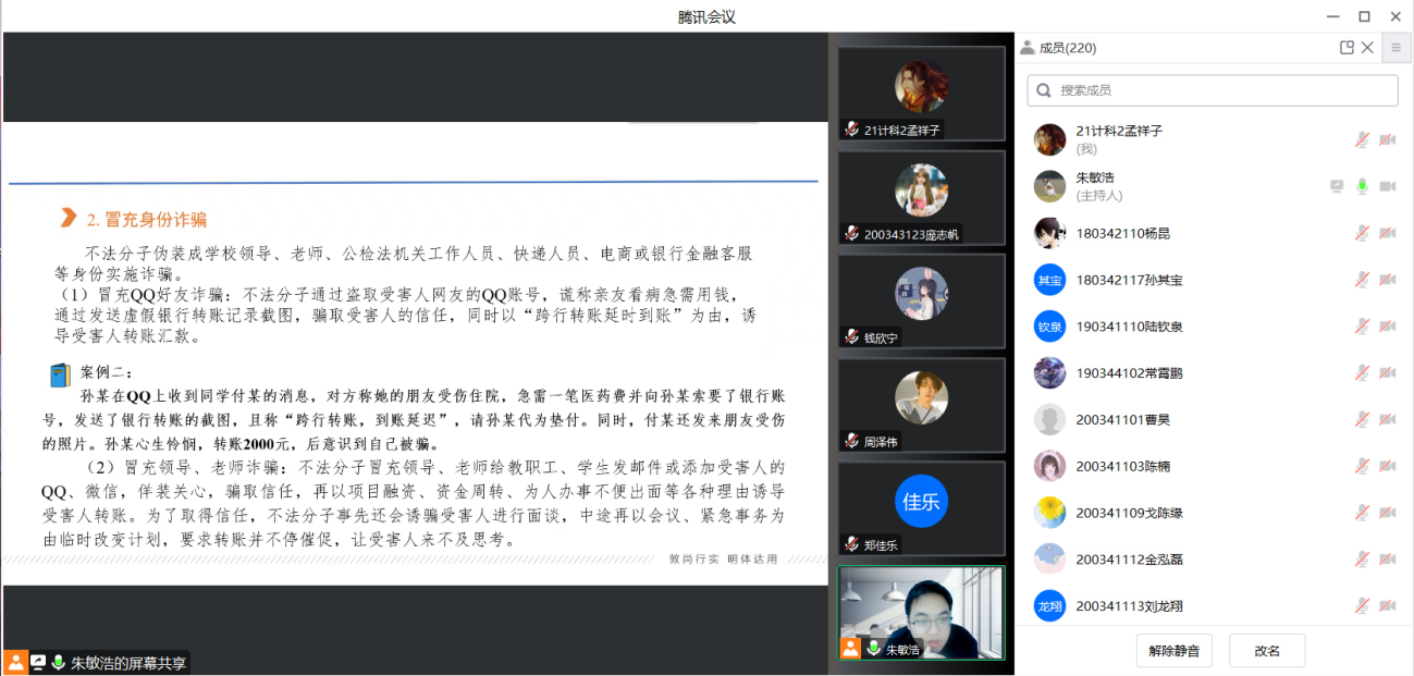 近日开学在即,为帮助同学们安全顺利地返校,提高防诈骗意识,更快地投入学习生活中,beats365辅导员许红梅、朱敏浩、李自鹏和印宇澄老师分别于2023年2月16日在线上为各年级开展了“道路千万条,安全第一条”安全教育主题班会。