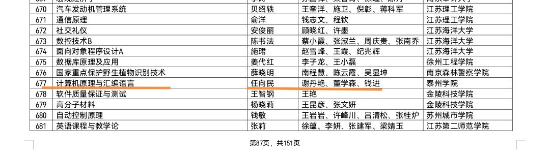 近日,教育部公布了国家一流课程认定名单,公司任向民和谢丹艳两位老师组织申报的《计算机原理与汇编语言》名列其中。