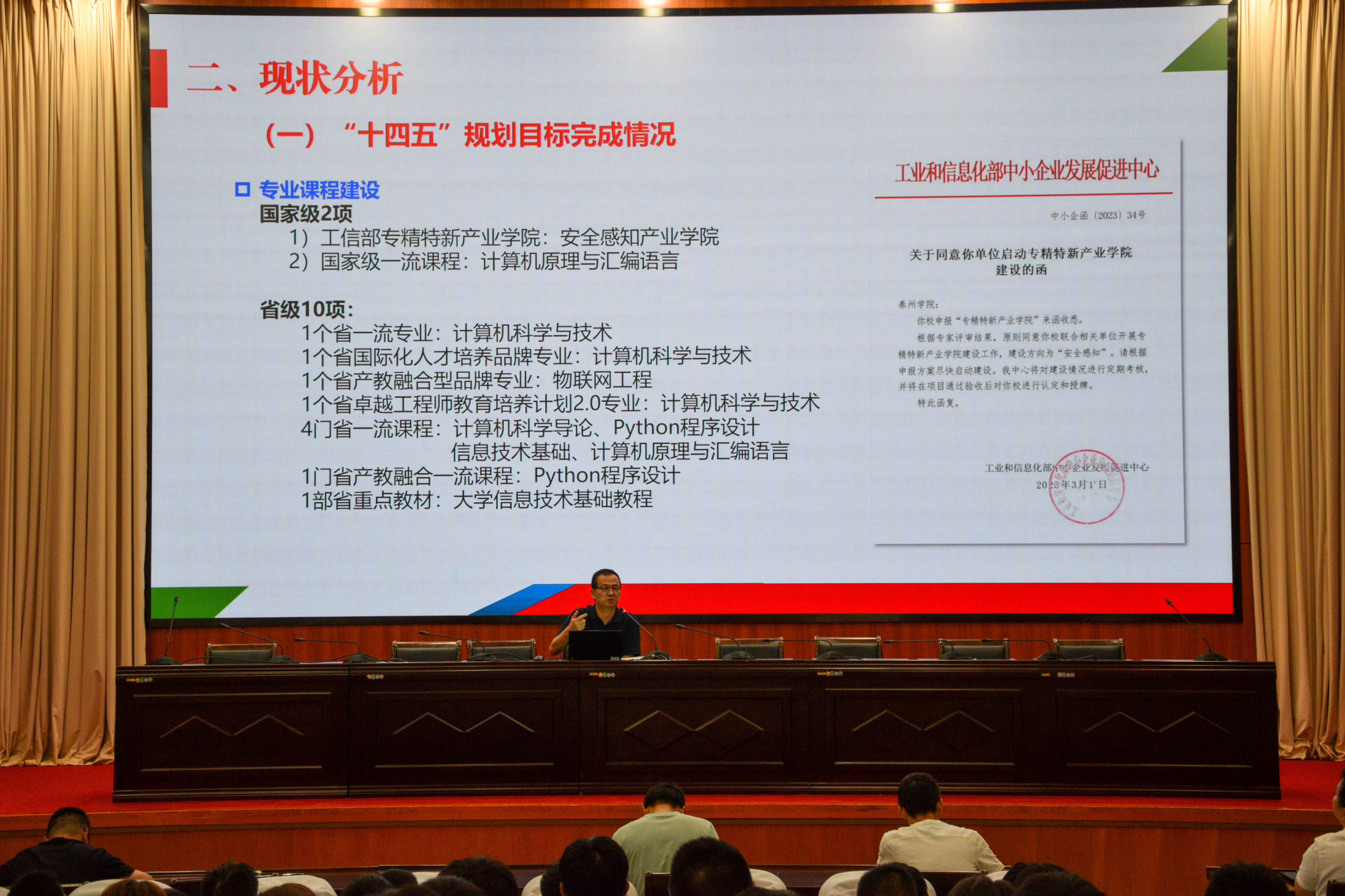 钱进副经理介绍了公司及系部基本情况、团队队伍组成、以及学科专业发展定位,并展示了团队建设上取得的典型成绩,要求员工把握学习机会,认真聆听会议,深化对专业的认识,科学规划专业发展。帅小应教授剖析了物联网工程专业的人才培养方案,重点介绍了人才培养目标和专业课程体系,鼓励员工们面向考研和就业扎实学习专业知识,不断锤炼实践技能。刘立军老师向员工强调了毕业设计在专业课程体系中的重要地位和作用,对毕业设计如何做进行了方法论上的指导,并给出了典型案例,要求员工以工程思维进行毕业设计的选题、需求分析、设计、及实现等环节。张彬老师向员工展开了公司在中国老员工计算机设计大赛、蓝桥杯全国软件和信息技术专业人才大赛等学科竞赛上已取得的累累硕果,勉励员工以赛促学、以赛促练。丁红霞老师为员工介绍了国际合作与交流项目,展示了公司在国际合作人才培养上取得的成绩,对员工如何申请国际交换生和中美人才培养计划等国际合作项目给出了指导和建议。周爱平老师和李慧博士分别向员工介绍了“计算机软件资格考试“和“工业和信息化人才培养证书”的行业背景、证书种类,从专业发展的角度为员工讲解考证的必要性和优势,并对如何报名和备考给出了详细指导。最后,崔宝同经理对22级课程考核情况进行了通报,要求员工强化主动学习意识,增强时间管理能力,提前规划职业生涯,并加强与教师的互动。