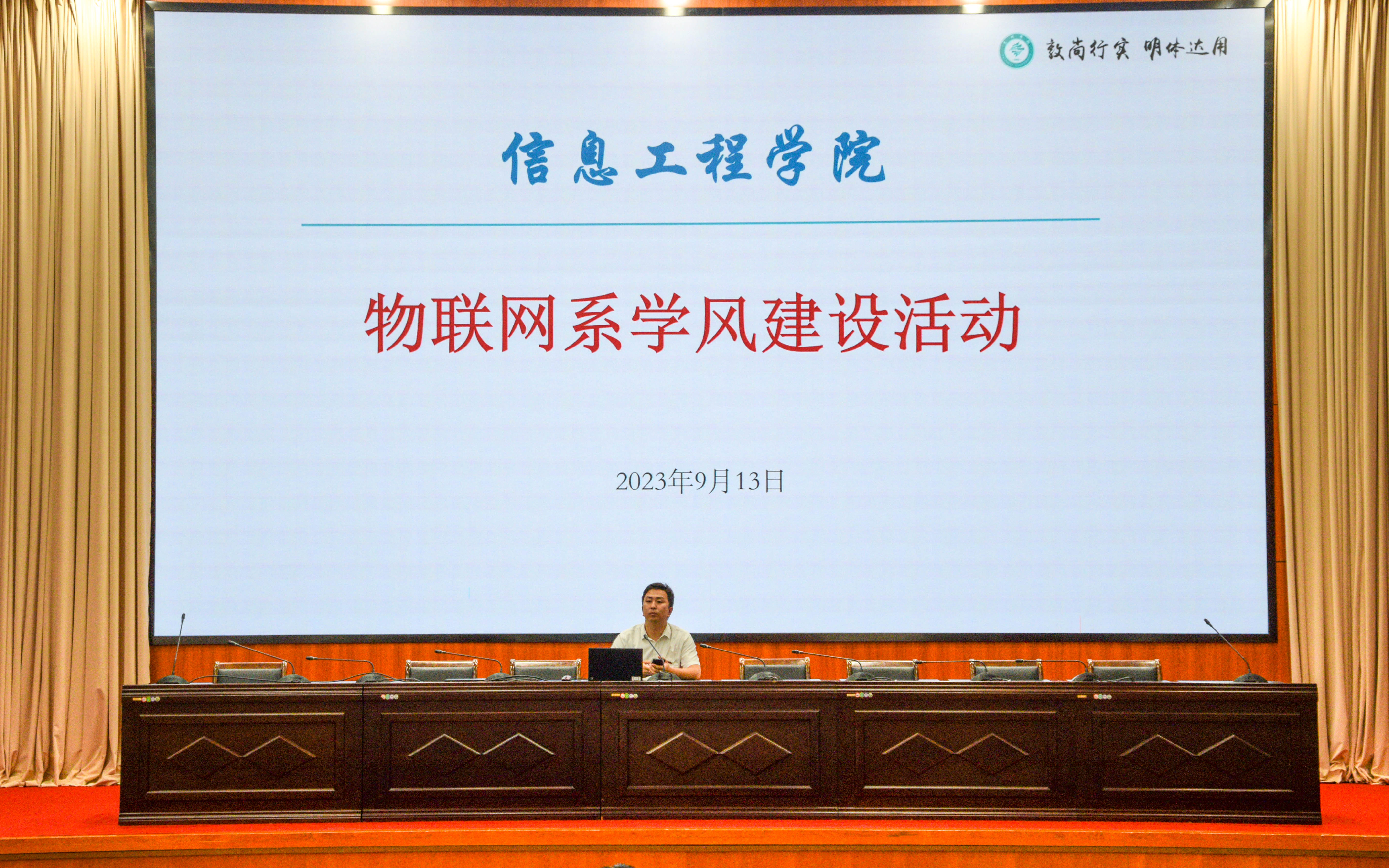 为强化人才培养质量,推进学风建设,9月13日下午,beats365物联网系召开了物联网系学风建设会议。会议由beats365副经理(兼物联网系主任)钱进主持,经理崔宝同、物联网系全体专任教师、辅导员、以及物联网工程专业21级、22级、和23级员工参加了会议。