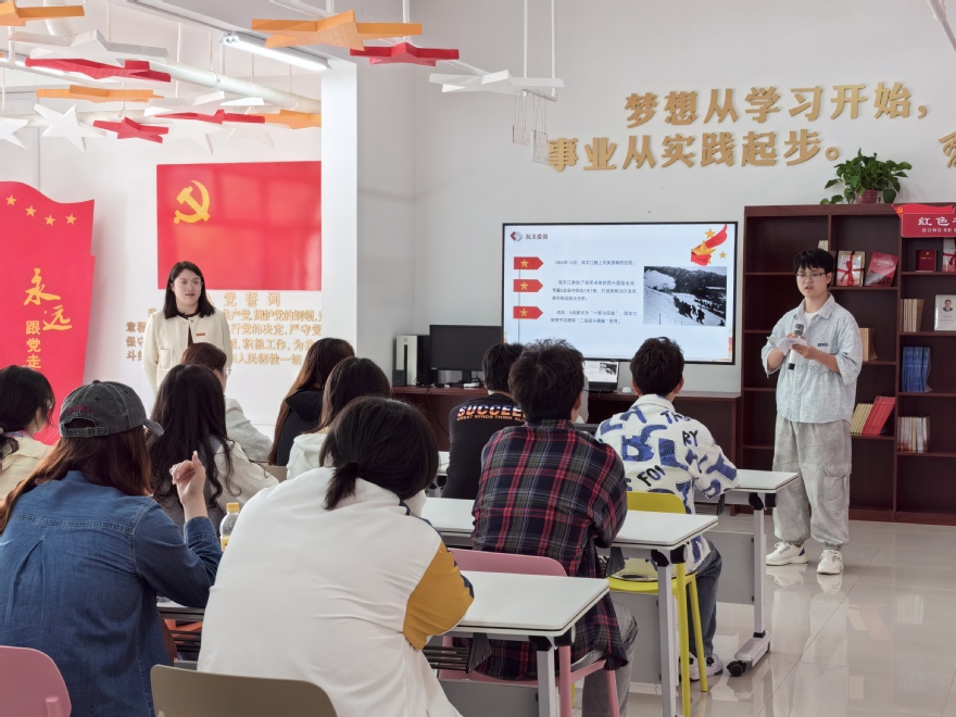 活动在激昂的音乐声中拉开帷幕。首先,孙宇哲同学分享了周文江奋勇争先突击渡长江的英雄故事,让同学们深刻感受到信仰的力量。其次,赵月讲述了英雄杨根思在抗美援朝战场上用自己的青春、热血乃至生命谱写的一曲感天动地、荡气回肠的英雄赞歌,让同学们重温了英雄先辈们为保家卫国而浴血奋战的光辉历史。随后,刘欢分享了英雄朱者赤献身革命事业的故事,激发了同学们的爱党、爱国之情。紧接着,谢子涛讲述了一个关于渔村的老百姓们为人民解放军赶造渡江大船的故事。最后,陆奕坤分享了关于李健不畏艰险开展“生根立足”的故事。故事中,革命先辈们以勇敢和智慧与敌人作斗争,义无反顾,英勇牺牲,面对敌顽,坚贞不屈……本次宣讲通过身边人讲身边事,以身边事感召身边人,使本地革命英雄事迹“看得见,记得牢,学得着”,让大家从革命先烈的事迹中汲取奋进力量,传承红色基因。