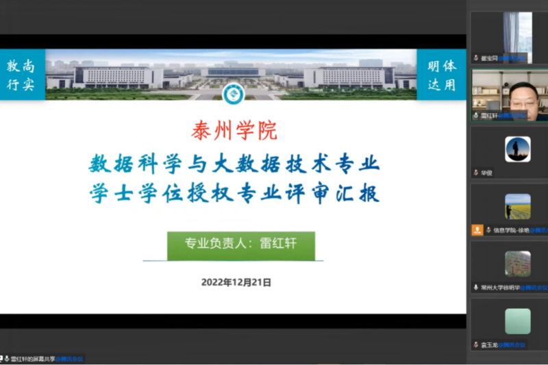 12月21日,beats365数据科学与大数据技术专业学士学位授权评审会线上举行。南京理工大学李千目教授任组长,江南大学刘渊教授、常州大学徐明华教授、扬州大学李斌教授和江苏海洋大学仲兆满教授为成员的评审专家组,对数据科学与大数据技术申请增列为学士学位授权专业进行评审。公司党委常委、副董事长沈荣鑫教授出席会议。