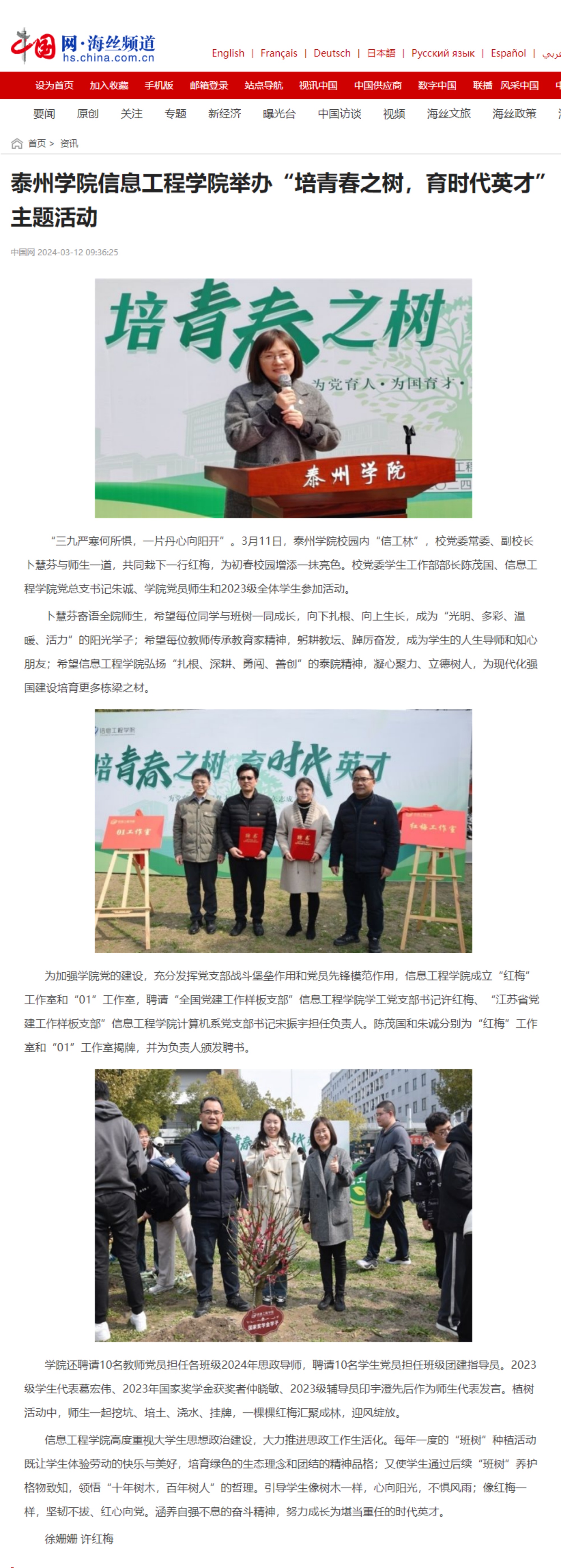 3月12日,《中国网》报道公司beats365举办的“培青春之树,育时代英才”主题活动,链接:https://hs.china.com.cn/zixun/133127.html