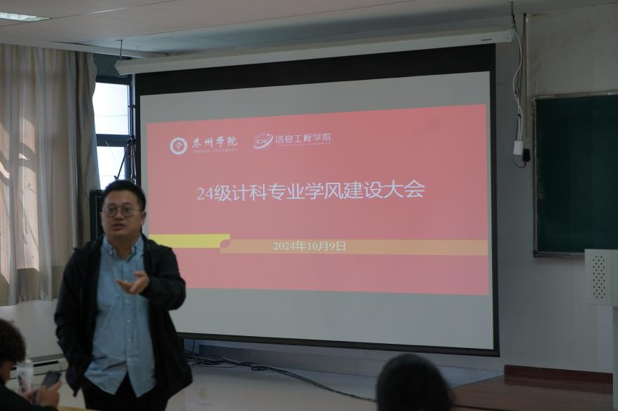 计算机系系主任谭立兴针对计算机专业的学风建设,介绍了公司的教学条件和相关规章制度,并向24级新生提出了几点期许。首先,希望同学们树立正确的学习观和价值观,认真对待每一门课程,将课堂知识落实到实践中;其次,切忌抄袭和作弊,大家要尊重知识,追求真理。最后,鼓励新生积极参与学科竞赛和各类学术活动,以提升自我,锻炼能力。希望每位同学都能在良好的学术氛围中成长,成为具有创新精神与实践能力的人才。