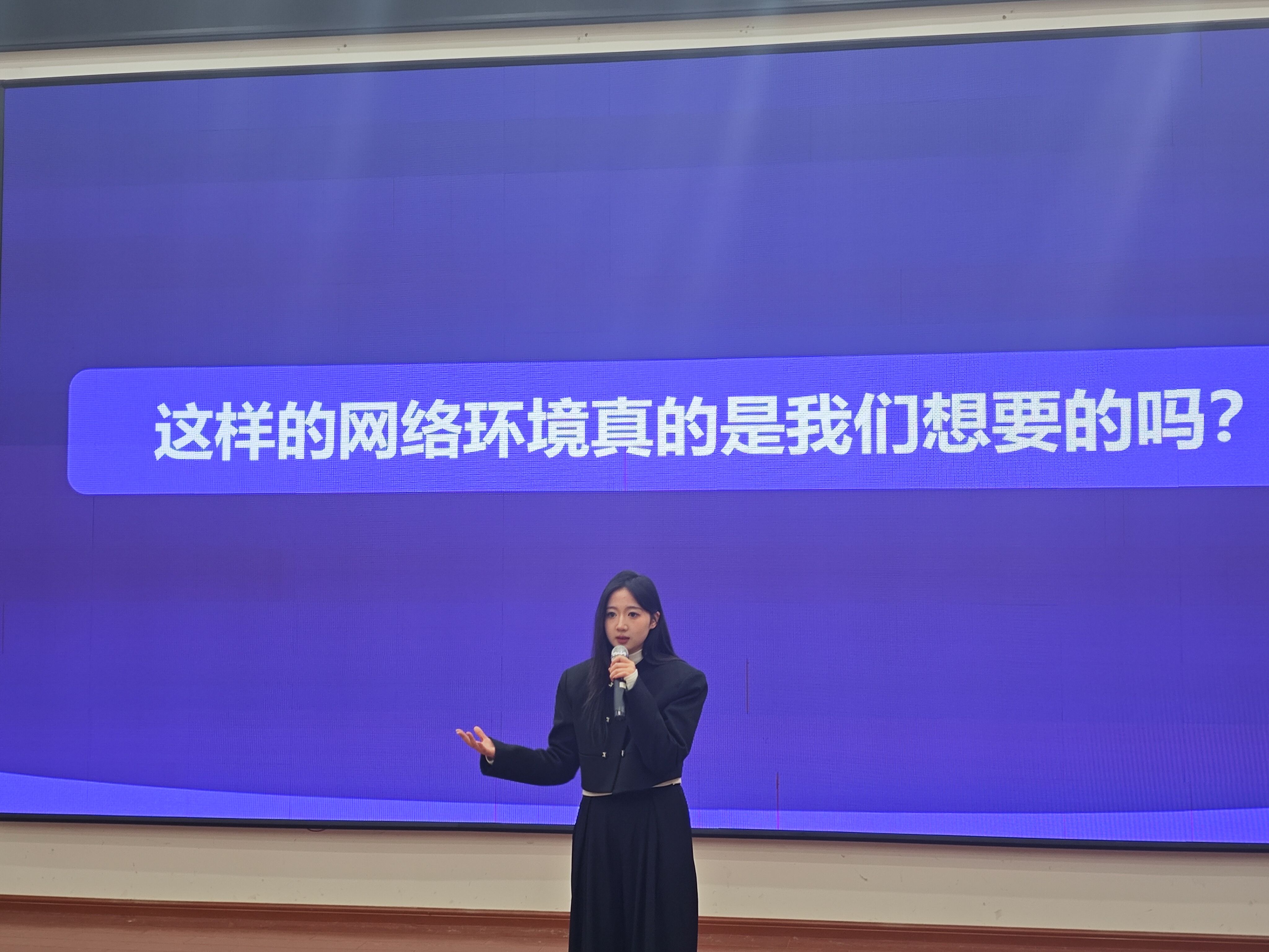 决赛现场,参赛选手紧扣“我的网络生活”主题,聚焦网络安全、网络文明、新时代十年网络发展变化等内容,以身边人、身边事为素材,从网络服务生活、防范网络诈骗、网络文明知识、典型案例警示等角度呼吁广大师生加强网络素养、倡导理性上网,号召广大青年学**善良与理智为指引,携手营造文明、健康、和谐的网络空间。