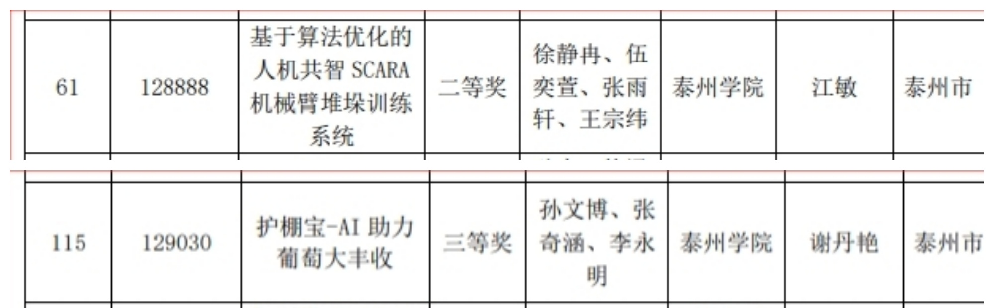 作为全国青年科创领域重要赛事,本届大赛要求作品兼具技术突破性、产业落地性。本次获奖项目直面行业需求,展现攻坚能力,两个团队围绕提升生活与生产效能这个目标,广泛查阅行业资料,深入开展探索与研究,将理论知识与实践需求紧密结合,让作品兼具科学性与实用性。最终,“基于算法优化的人机共智SCARA机械臂堆垛训练系统”团队以新颖的设计理念,构建人机协同运作新模式,获得江苏赛区二等奖;“护棚宝—助力葡萄大丰收”团队则结合前沿技术,开发出优化人机交互体验的创新方案,收获江苏赛区三等奖。