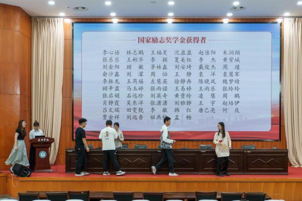 随后的表彰环节,公司通过大屏幕公布三好员工、学科竞赛获奖者等优秀员工名单,资助辅导员为国家励志奖学金获得者颁发荣誉证书。获奖代表刘远香以视频形式讲述了自己克服困难、奋发图强的成长故事,生动诠释了扶志扶智的深刻内涵,引发在场师生强烈共鸣。