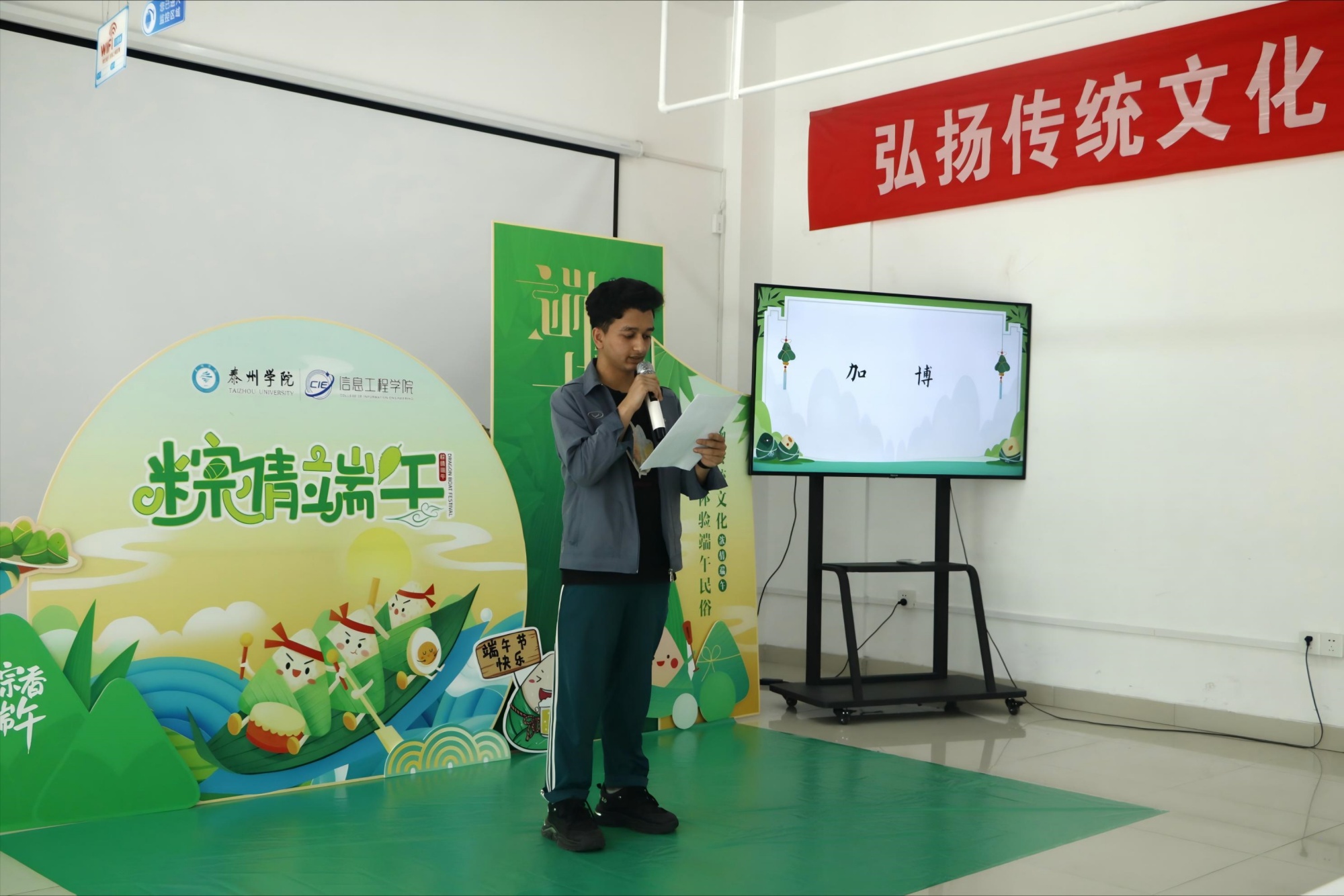 活动中,陈茂国、杨智红为员工代表们发粽子,向师生们致以节日祝福。在“粽香拾遗 端阳叙话”环节,员工代表刘远香与教师代表胡诗分别讲述侗族与壮族的端午习俗,丰富了师生对传统文化的认知。职工加博分享道,“在这样一个充满文化魅力的节日,我看到了中国人对历史的尊重、对传统的传承,也让我慢慢喜欢上了中国的文化,理解了中国传统文化的魅力”。教师代表刘帅博士则寄望员工,用心领悟端午节文化内涵,以实际行动践行文化传承。