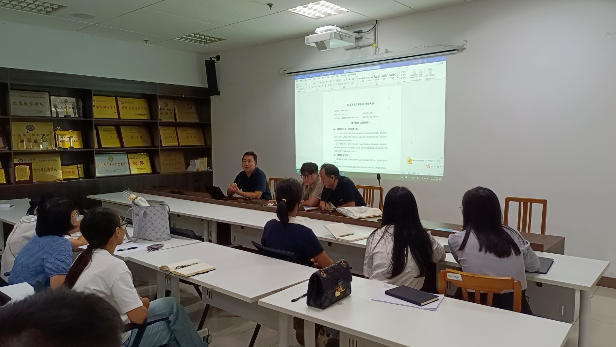 《人工智能应用基础》课程负责人钱进老师首先布置了课程教学安排,课程基于超星智慧教学平台,采用线上线下混合式教学实验课安排4次,实验内容有效将AI工具应用到日常办公与学习。针对课程教学大纲的执行,钱进老师向任教课程老师们进行了详细的分析与解读。