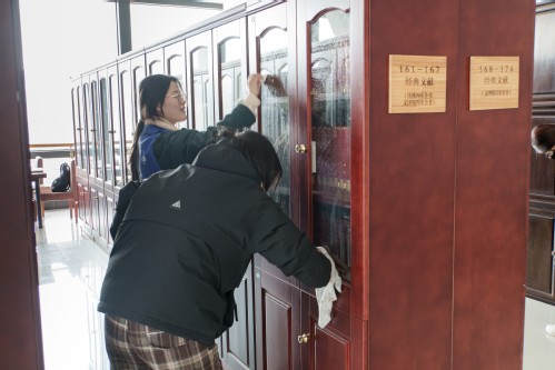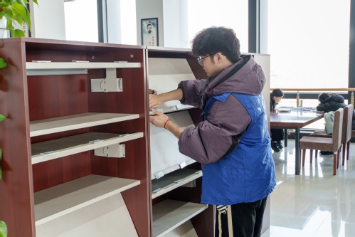 活动于下午2点在图书馆门前广场启动。志愿者对书报架积尘、阅览桌及地面死角展开深度清理,经过近1小时的协作,图书馆阅览区的书报架、阅览桌及公共空间环境焕然一新。